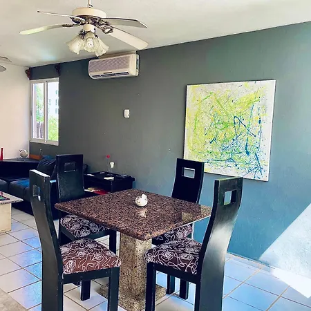 The apartment is approximately a 15-minute ride from the El Centro district in Cancun. You can also reach El Malecón, which is within 8 km of this apartment.